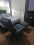 I was very happy to find this chair bed that is also comfortable like a sofa. I use it for occasional guests but it also looks great in the room as an arm chair that can also recline back or be turned into a chaise longue for ultimate relaxation! Very clever design indeed. Good minimal modern appearance. The padding is firm but comfortable my first guest informed me. Delivery was very fast and price was good. Will shop here again!